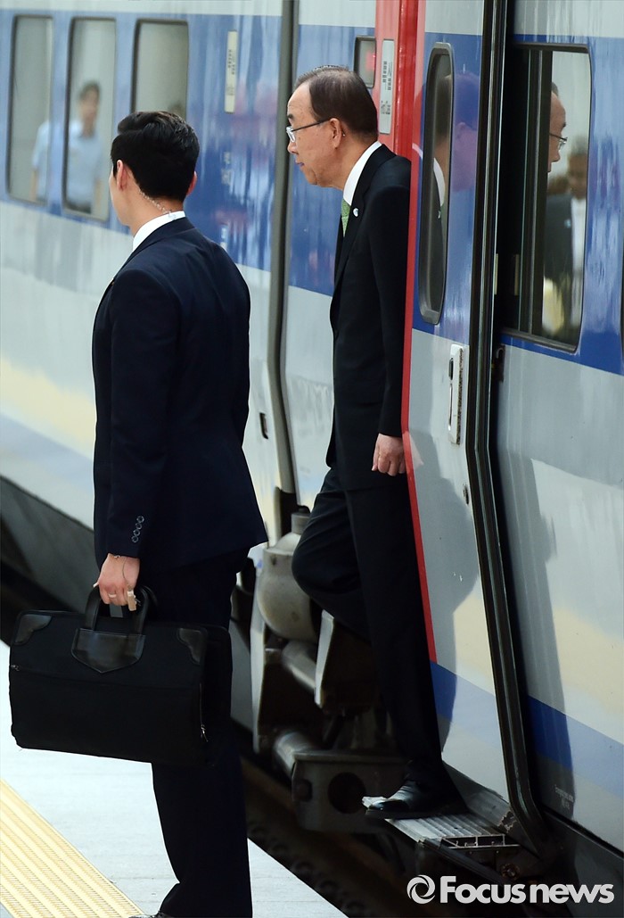 (인천공항=포커스뉴스) 방한일정을 마친 반기문 유엔 사무총장이 30일 오후 인천국제공항 KTX역에 내리고 있다.