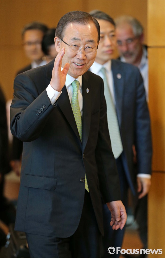 (인천공항=포커스뉴스) 반기문 유엔 사무총장이 30일 오후 인천국제공항에서 출국에 앞서 취재진에 손을 들어 인사하고 있다.