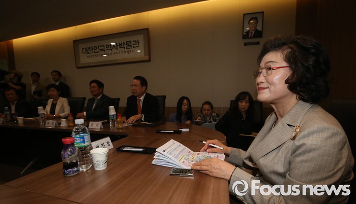 (서울=포커스뉴스) 한일간 일본군 위안부 합의에 따른 위안부 재단 설립 준비위원회 제1차회의가 열린 31일 오전 서울 세종로 대한민국역사박물관 회의실에서 위원장인 김태현 성신여대 명예교수(오른쪽)와 위원들이 회의를 시작하고 있다.