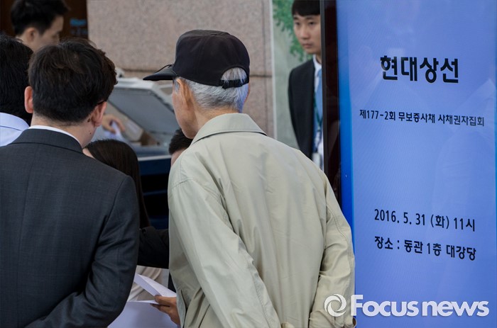현대상선 관계자는 "채권자들이 법정관리를 가는 것보다 합의를 해주는 것이 채권 회수 측면세어 낫다고 생각한 것 같다"고 밝혔다.31일 오전 서울 종로구 현대그룹 본사에서 열린 현대상선 사채권자 집회에 사채권자 및 관계자들이 입장하고 있다. 사채권자 집회는 일정 금액 이상 사채권자들의 동의를 얻어 해당 사채의 조건을 일괄 변경하는 상법 절차다. 2016.05.31 양지웅 기자
