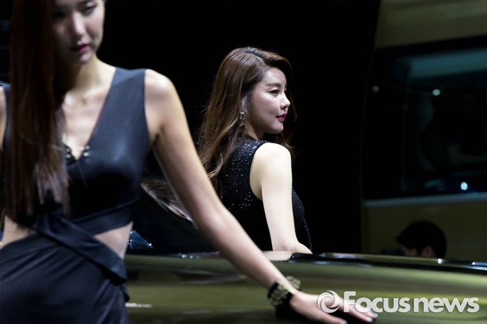 (부산=포커스뉴스) 2일 오전 부산 해운대구에 위치한 벡스코에서 열린 '2016 부산국제모터쇼'에서 레이싱 모델들이 기아 '텔루라이드' 앞에서 포즈를 취하고 있다.