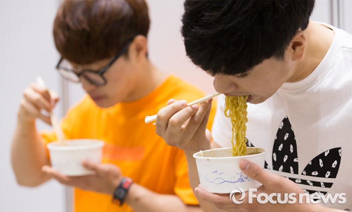 (서울=포커스뉴스) 3일 오후 서울 강남구 코엑스에서 2016 대한민국 라면박람회를 찾은 시민들이 라면을 시식하고 있다.