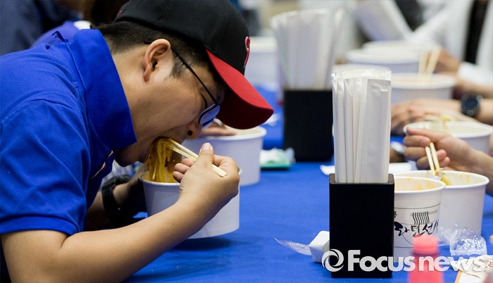 (서울=포커스뉴스) 3일 오후 서울 강남구 코엑스에서 2016 대한민국 라면박람회를 찾은 시민들이 라면을 시식하고 있다.