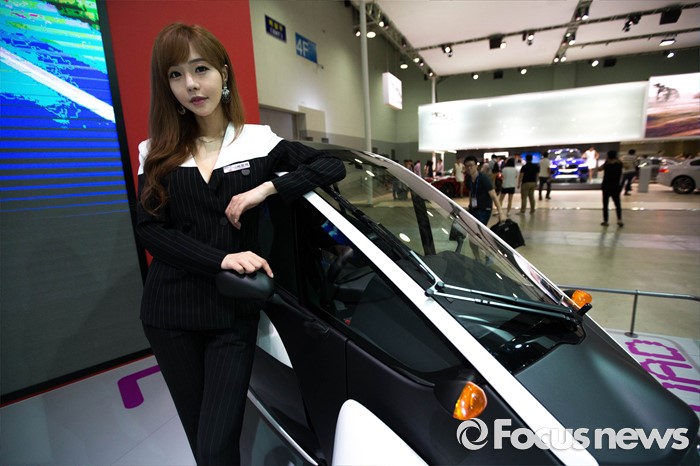 (부산=포커스뉴스) 3일 오후 부산 해운대구 벡스코에서 '2016 부산 국제모터쇼'가 공식 개막한 가운데 레이싱걸이 관람객들을 향해 포즈를 취하고 있다. 이번 국제모터쇼는 오는 12일 까지 계속 된다.