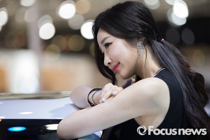 (부산=포커스뉴스) 3일 오후 부산 해운대구 벡스코에서 '2016 부산 국제모터쇼'가 공식 개막한 가운데 레이싱걸이 관람객들을 향해 포즈를 취하고 있다. 이번 국제모터쇼는 오는 12일 까지 계속 된다.