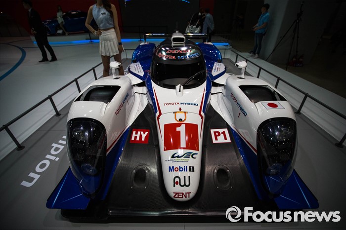 (부산=포커스뉴스) 3일 오전 부산 해운대구에 위치한 벡스코에서 열린 '2016 부산국제모터쇼'에 도요타의 하이브리드 레이싱 머신 'TS040' 차량이 전시되어 있다.