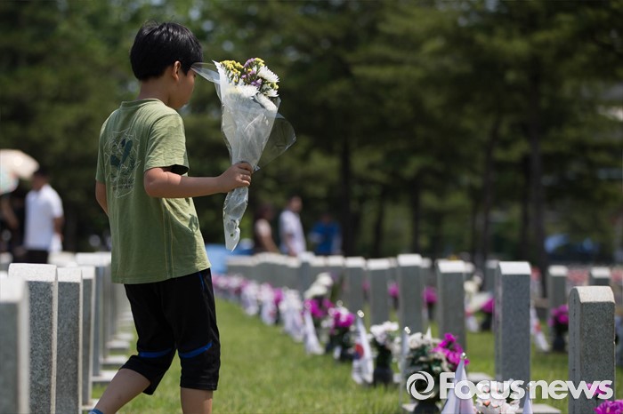 (서울=포커스뉴스) 현충일을 하루 앞둔 5일 오전 서울 동작구 국립서울현충원을 찾은 유족들이 묘역에 참배하고 있다.