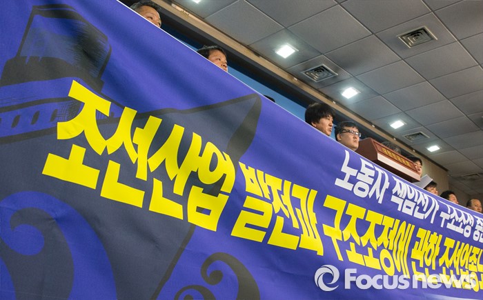 (서울=포커스뉴스) 조선업계에 대규모 인력 구조조정이 현실화될 위기에 놓이자 조선업 노조가 대규모 투쟁을 준비하고 있다.