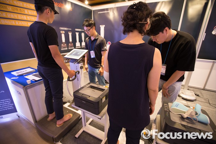 (서울=포커스뉴스) 9일 오후 서울 강남구 코엑스 D홀에서 열린 '2016 세계 다이어트 엑스포'에서 시민들이 건강보조기구를 체험하고 있다. 기간은 6.9~6.11일 까지 진행된다.