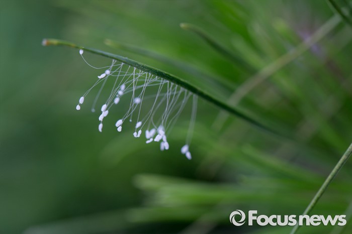 (서울=포커스뉴스) 9일 오전 서울 용산구 행정공제회 주차장 소나무 잎에 우담바라가 피어있다. 불교계에서 우담바라를 신성시 하는 것과 달리 학계에선 실잠자리의 알이나 곰팡이의 일종으로 보고있다.