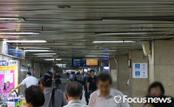 | △ 종로5가역 훼손된 천장 아래 지나는 시민들 |