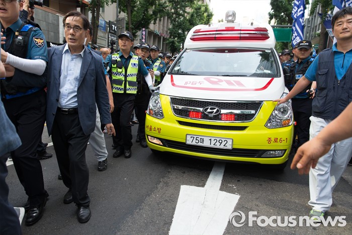 △ 병원으로 후송되는 기아차 비정규직 노동자들