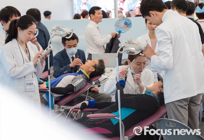 (서울=포커스뉴스) 9일 오전 서울 청계광장에서 열린 제1회 서울시민 구강보건의 날 기념행사에 참석한 시민들이 무료 치아검진을 받고 있다.