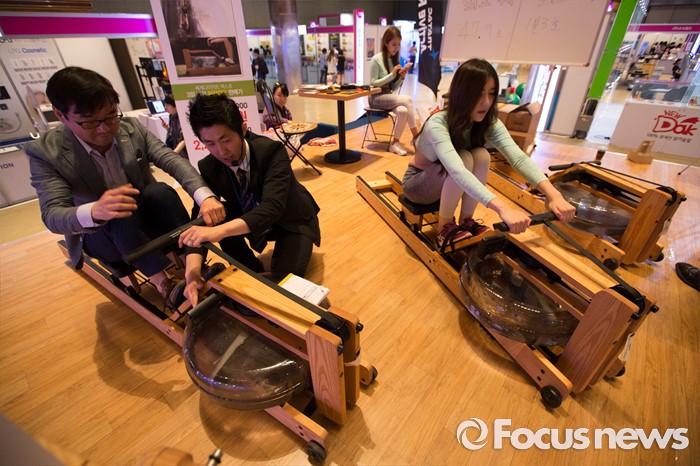 (서울=포커스뉴스) 9일 오후 서울 강남구 코엑스 D홀에서 열린 '2016 세계 다이어트 엑스포'에서 시민들이 건강보조기구를 체험하고 있다. 기간은 6.9~6.11일 까지 진행된다.