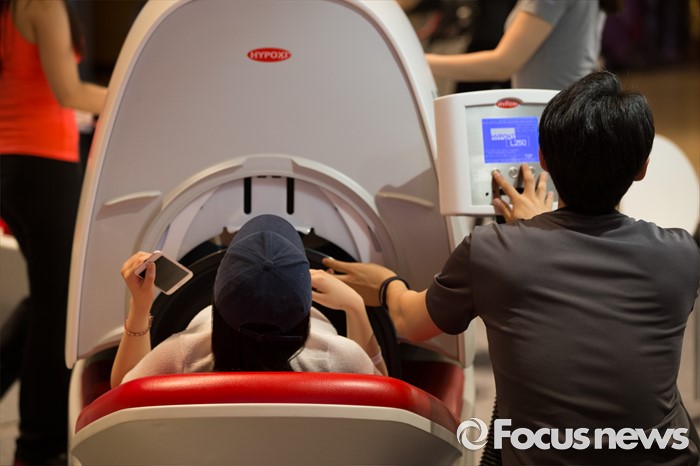 (서울=포커스뉴스) 9일 오후 서울 강남구 코엑스 D홀에서 열린 '2016 세계 다이어트 엑스포'에서 시민들이 건강보조기구를 체험하고 있다. 기간은 6.9~6.11일 까지 진행된다.