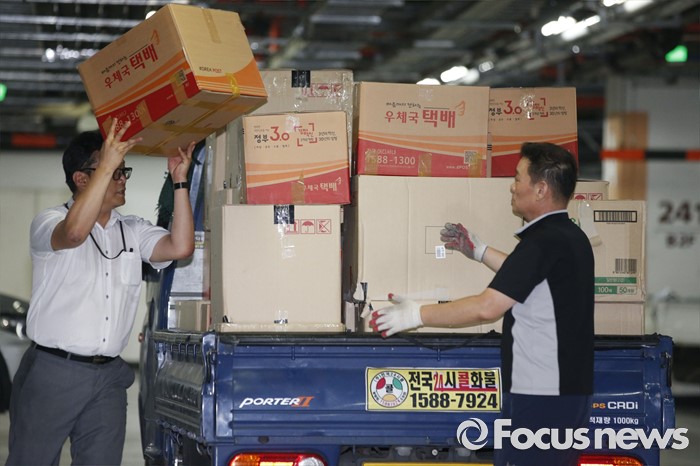 (서울=포커스뉴스) 10일 오후 서울 중구 소공동 롯데호텔에서 검찰 수사관들이 롯데그룹 정책본부 등 계열와 신동빈 롯데그룹 회장 집무실에서 압수수색한 서류를 화물차에 싣고 있다.