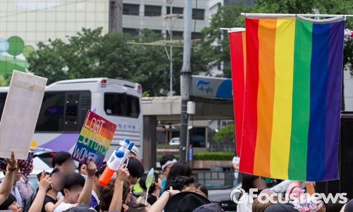 (서울=포커스뉴스) 11일 오후 제17회 퀴어문화축제 참가자들이 서울광장을 출발해 을지로일대를 지나며 퀴어퍼레이드를 벌이고 있다.