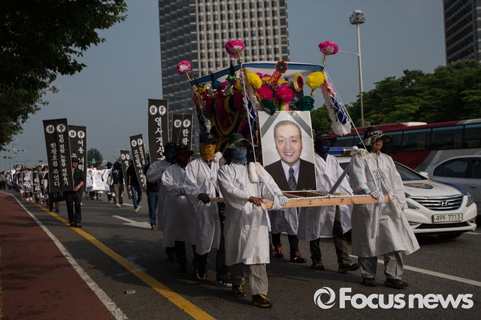 유성기업 노동자 故 한광호씨의 꽃상여 행진
