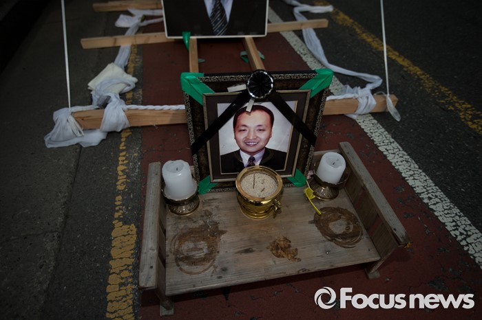 △ 상여 앞에 놓인 故 한광호씨의 영정 사진