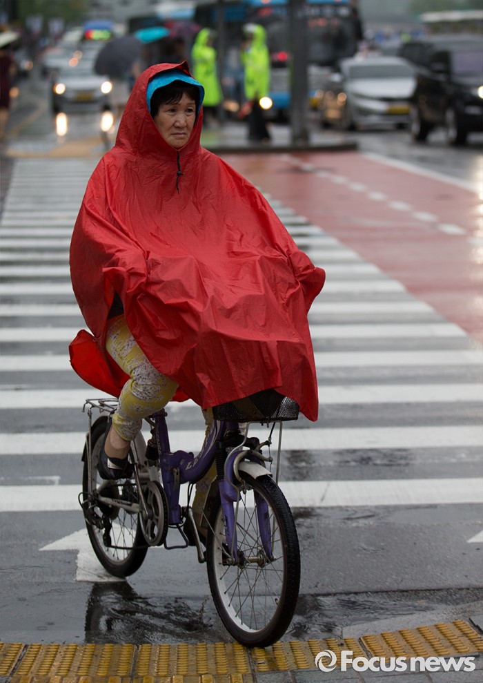 (서울=포커스뉴스) 전국적으로 비가 내리는 15일 오후 서울 종로구 광화문광장을 지나는 한 시민이 비를 피해 발걸음을 재촉하고 있다.