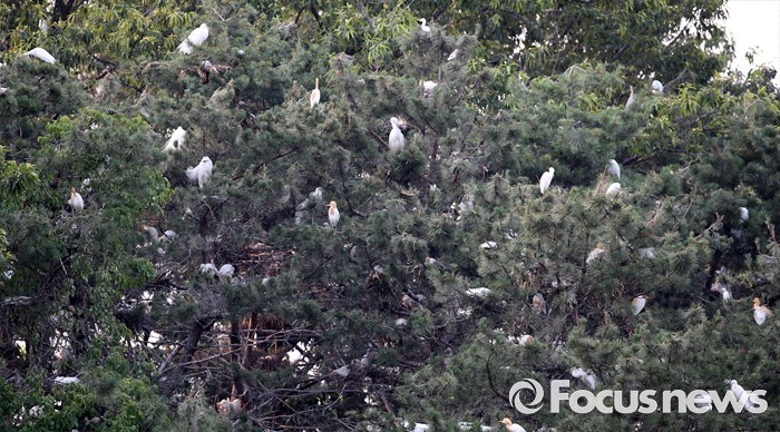 (청주=포커스뉴스) 17일 오후 충북 청주시 서원대학교 야산에 백로 수 백마리가 둥지를 틀고 있다.