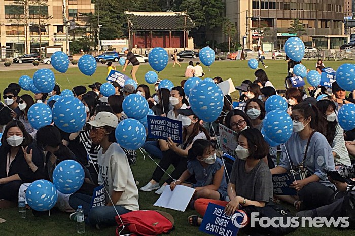온라인 커뮤니티를 중심으로 미세먼지 대책마련의 목소리를 높여온 이 단체는 대부분 자녀를 둔 학부모들이 회원으로 활동하고 있다. 이날 집회에는 부모 손을 잡고 참석한 아이들이 특히 눈에 띄었다. 이들은 미세먼지 없는 파란하늘을 희망하는 마음으로 하늘색 풍선을 준비하기도 했다.