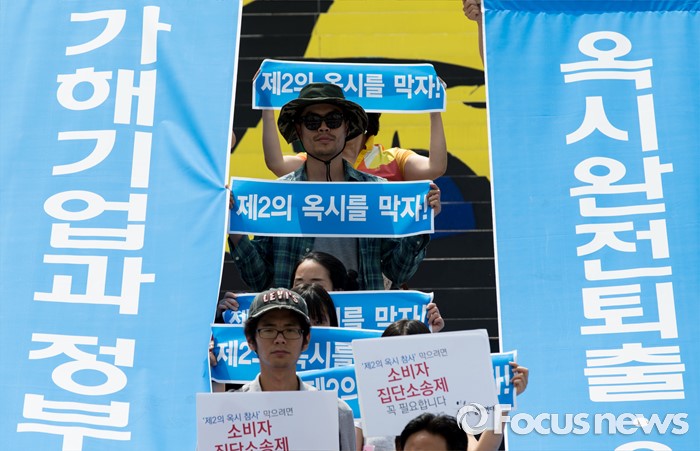 (서울=포커스뉴스) 20일 오후 서울 종로구 세종문화회관 앞 계단에서 환경운동연합과 시민사회단체들이 가습기 살균제 참사 전국네트워크 출범 기자회견을 하고 있다.
