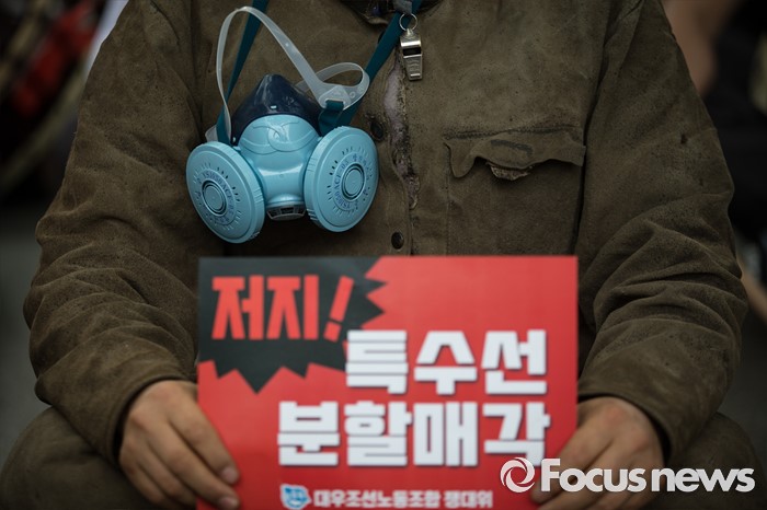 노조는 회사 연간 매출의 10%(1조원 가량)을 담당하는 특수선 사업부를 분할 매각하려는 회사와 채권단의 움직임에 대해 납득할 수 없다는 입장을 보이면서, 회사 전체를 해외에 매각하려는 수순을 밟는 것이 아니냐는 의심을 품고 있다.