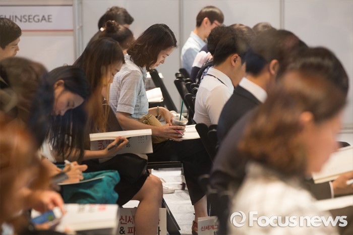 (서울=포커스뉴스) 21일 오후 서울 강남구 코엑스 D2홀에서 열린 신세계그룹&파트너사 채용박람회에서 구직자들이 상담을 기다리고 있다.