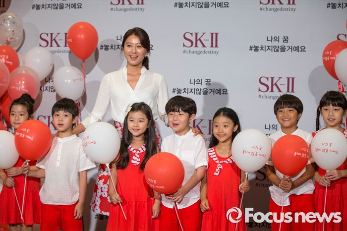 (서울=포커스뉴스) 배우 김희애가 21일 오후 서울 삼성동 그랜드 인터컨티넨탈 호텔에서 열린 'SK-II 나의 꿈 #놓치지않을거예요' 캠페인 런칭 행사에 참석, 아이들과 함께 포토월 앞에서 포즈를 취하고 있다.
