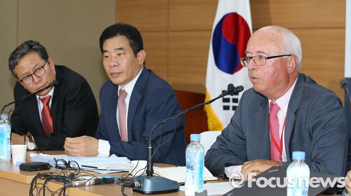 ▲물론 그 갈등은 잘 알고 있다. 진행과정에서 의견수렴을 충분히 했고, 그 부분을 충분히 반영했다. 법적인 정치적인 그런 리스크는 전문가들의 판단으로 고려했다,장 마리 슈발리에(오른쪽) 프랑스 파리공항공단자회사 ADPi 수석엔지니어가 21일 오후 세종시 정부세종청사 국토교통부 브리핑실에서 열린 동남권 신공항 타당성 검토 연구 최종 보고회에서 입지선정 결과 발표를 마치고 취재진의 질문에 답변하고 있다. 왼쪽부터 손명수 국토부 공항항행정책관,서훈택 국토부 항공정책실장. 2016.06.21 김기태 기자 서훈택 국토부 항공정책실장이 21일 오후 세종시 정부세종청사 국토교통부 브리핑실에서 열린 동남권 신공항 타당성 검토 연구 최종 보고회에서 입지선정 결과 발표를 마치고 취재진의 질문에 답변하고 있다. 2016.06.21 김기태 기자 장 마리 슈발리에 프랑스 파리공항공단자회사 ADPi 수석엔지니어가 21일 오후 세종시 정부세종청사 국토교통부 브리핑실에서 열린 동남권 신공항 타당성 검토 연구 최종 보고회에서 입지선정 결과 발표를 마치고 취재진의 질문에 답변하고 있다.2016.06.21 김기태 기자