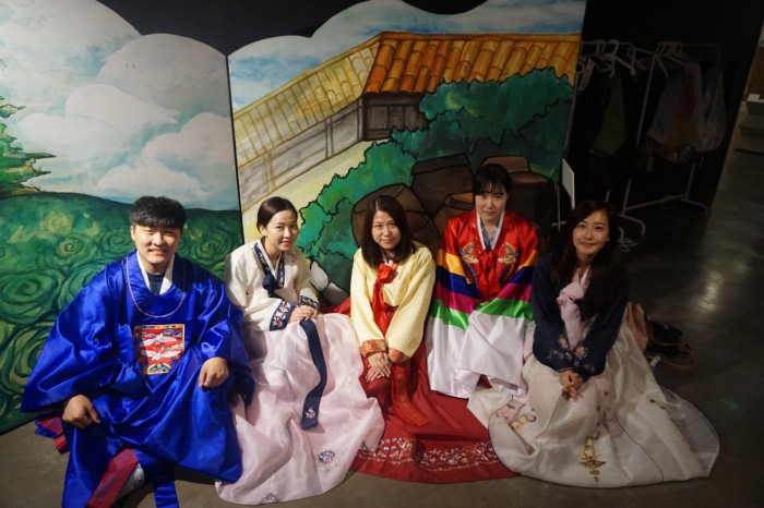 인사동에선 외국인들도 한복을 입고 관광을 즐기는 모습을 쉽게 볼 수 있다.뮤지엄김치간을 방문한 중국인 대학생 관람객들이 비치된 한복을 입고 관람한 후 기념 촬영을 하고 있다.<사진제공=뮤지엄김치간>