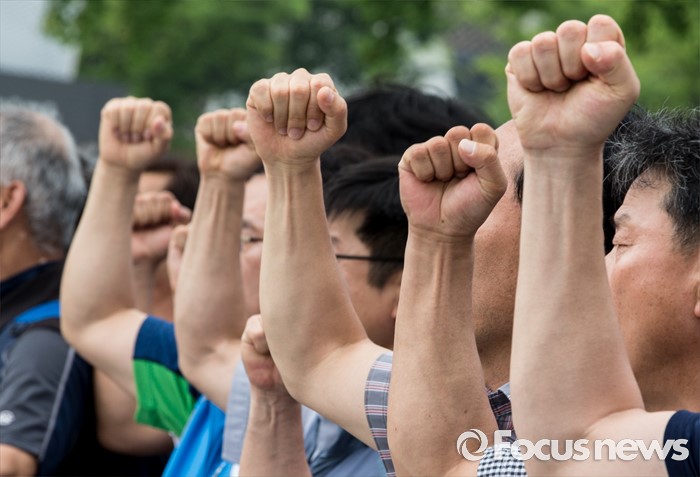 (서울=포커스뉴스) 22일 오전 서울 종로구 정부서울청사 앞에서 민주노총 공공운수노조와 한국노총 공공연맹, 지방공기업연맹이 공동투쟁위원회 출범 및 공동투쟁 선포 기자회견을 하고 있다.