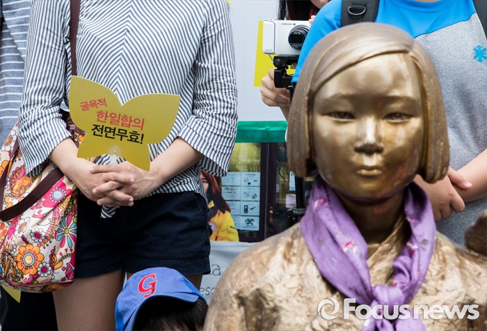 (서울=포커스뉴스) 22일 오후 서울 종로구 옛 일본대사관 앞에서 제1236차 일본군 위안부 문제해결을 위한 정기수요집회가 열리고 있다.