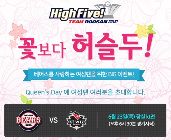 (서울=포커스뉴스) 프로야구 두산이 23일 잠실 kt와의 경기에 '퀸스 데이' 행사를 연다.