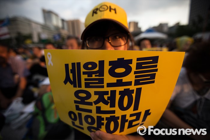 (서울=포커스뉴스) 25일 오후 서울 종로구 광화문광장에서 열린 '세월호 특별법 개정 촉구 범국민문화제'에 참석한 시민들이 세월호 특별법 개정과 온전한 인양을 촉구하고 있다.