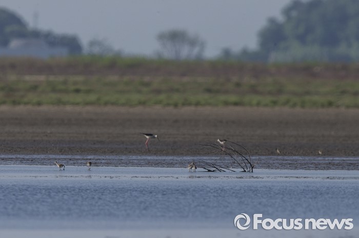 (인천=포커스뉴스) 26일 오전 부화한 지 10 여일 된 장다리물떼새 새끼들이 어미를 따라 영종도 매립지 습지에서 먹이를 찾고 있다.