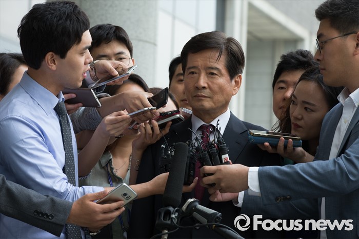 (서울=포커스뉴스) 대우조선해양 비리 의혹과 관련해 남상태 전 대우조선해양 사장이 27일 오전 서울 서초구 서울고등검찰청으로 들어가기 전 취재진의 질문을 받고 있다.