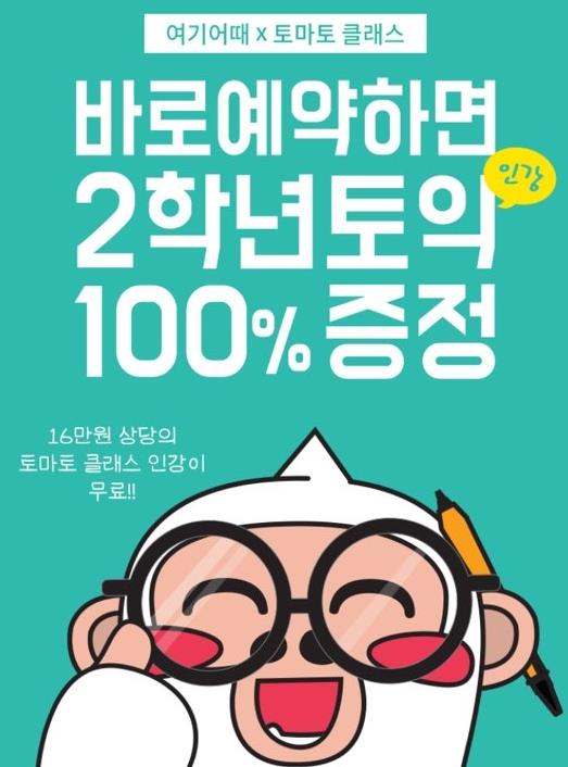 강의 쿠폰 코드는 결제 다음날 '여기어때' 앱 내 메시지함에 들어온다. 쿠폰 번호를 '토마토클래스'의 여기어때 이벤트 페이지에 입력하면 된다. 강좌는 토마토클래스에서 펴낸 '2학년 토익' 교재를 공부할 수 있도록 총 230강으로 구성됐다.