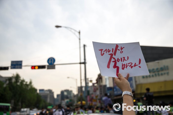 (서울=포커스뉴스) 27일 오후 서울 종로구 정부서울청사 앞에 세월호 관계자들이 세월호 특별법 개정 및 선체 인양을 촉구하는 기자회견을 하기 위해 청운동주민센터 앞으로 이동하고 있다.