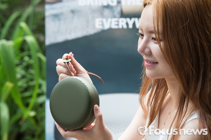 (서울=포커스뉴스) 28일 오전 서울 종로구의 한 카페에서 열린 뱅앤올룹슨의 블루투스 스피커 '베오플레이 A1(Beoplay A1)' 출시 포토세션행사에 한 모델이 신제품을 선보이고 있다.
