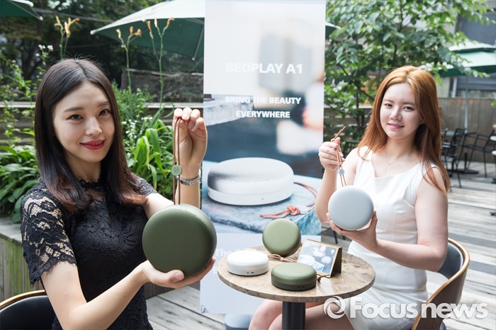 (서울=포커스뉴스) 28일 오전 서울 종로구의 한 카페에서 열린 뱅앤올룹슨의 블루투스 스피커 '베오플레이 A1(Beoplay A1)' 출시 포토세션행사에 모델들이 신제품을 선보이고 있다.