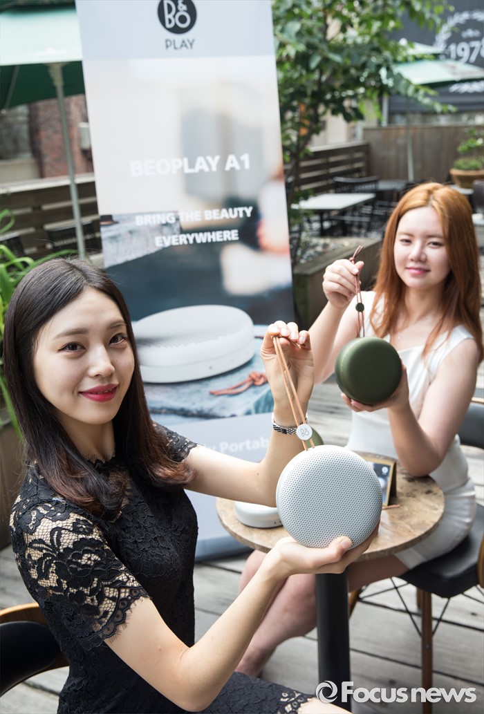 (서울=포커스뉴스) 28일 오전 서울 종로구의 한 카페에서 열린 뱅앤올룹슨의 블루투스 스피커 '베오플레이 A1(Beoplay A1)' 출시 포토세션행사에 모델들이 신제품을 선보이고 있다.