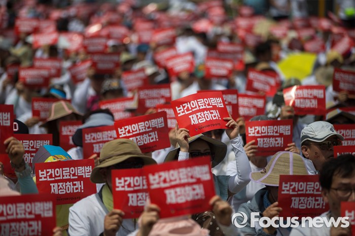 (서울=포커스뉴스) 29일 오후 서울 용산구 서울역 앞에서 보건의료노조의 총력투쟁 결의대회 집회가 열리고 있다.