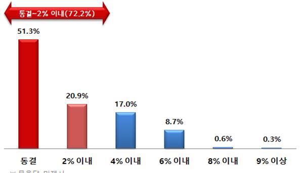 또 '2% 이내 인상'을 원하는 기업은 20.9%로, 4곳 중 3곳(72.2%)은 '동결'과 '2% 이내 소폭 인상'을 원하는 것으로 조사됐다.