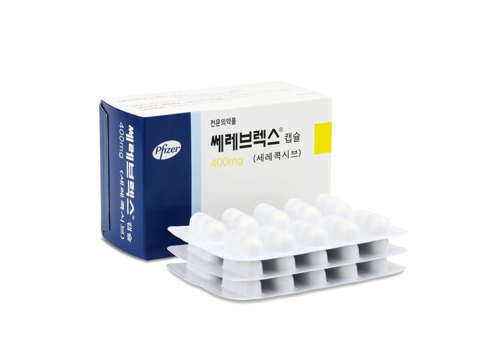 쎄레브렉스는 통증과 염증을 유발하는 콕스-2 효소를 선택적으로 억제해 통증 및 염증을 효과적으로 완화시키면서 기존 NSAIDs에서 흔히 발생할 수 있는 위장관 합병증의 위험은 낮게 나타난 약제로, 최근 기존 쎄레브렉스 캡슐(100mg/200mg)의 고용량인 ‘쎄레브렉스 캡슐 400mg’을 출시해 강직성척추염 등 환자의 통증과 상태를 고려한 효과적인 치료 옵션을 제공하고 있다.<사진출처=한국화이자제약>