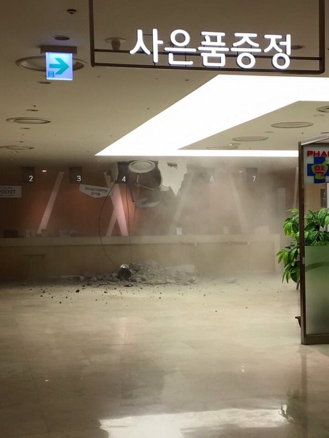 롯데백화점 관계자는 “환풍구 노후화 등의 문제로, 건물 자체와는 관련이 없는 것으로 파악했다”며 “사고 발생 당일 보수 조치를 마쳤다”고 설명했다.6월1일 롯데백화점 부산 서면점 지하 1층 천장이 내려앉는 사고가 발생한 가운데 현장을 찍은 사진이 온라인 상에 유포되고 있다.<사진출처=SNS>