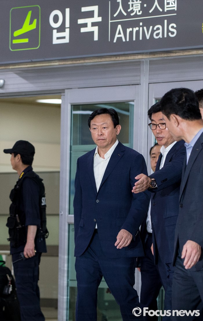 (서울=포커스뉴스) 신동빈 롯데그룹 회장이 3일 오후 서울김포공항을 통해 귀국하고 있다. 신 회장은 이날 기자들에게 최근 롯데그룹을 둘러싼 일련의 사태에 대해 "죄송하다"고 공식 사과 했다.