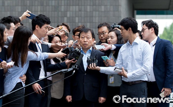 (서울=포커스뉴스) 5조 4천억 원대 회계사기로 대우조선해양 비리 의혹 핵심 인물로 지목된 고재호 전 사장이 4일 오전 서울중앙지방검찰청 부패범죄 특별수사단으로 출석하고 있다.