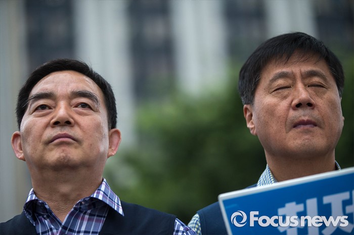 (서울=포커스뉴스) 4일 오전 서울 종로구 정부서울청사 앞에서 양대노총의 최저임금 대폭인상 및 노동자위원 중대 결단을 예고하는 기자회견이 열리고 있다.